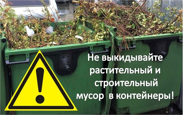 Запрещено оставлять в контейнерах и бункерах для ТКО, а также на прилегающей территории скошенную траву, опавшую листву, спиленные ветки, выкорчеванные пни и другую древесно-растительную органику. За нарушение этого правила предусмотрена административная ответственность в соответствии со статьёй 8.2 КоАП РФ «Несоблюдение требований в области охраны окружающей среды при обращении с отходами производства и потребления».